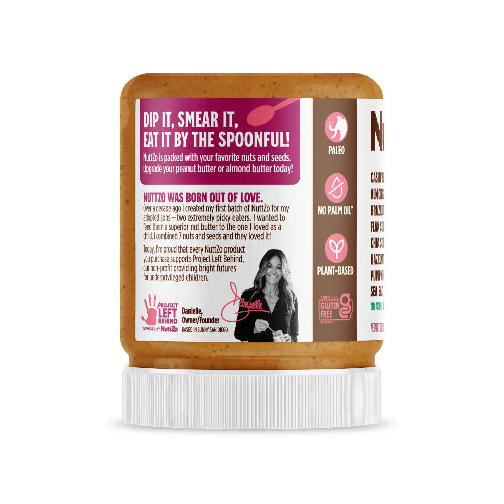 Elevate your almond or peanut butter to 7 nuts and seeds! Enjoy this delicious blend that's made without peanuts. Add to smoothies for a protein punch, drizzle on your favorite pancakes or desserts, spread on fruit, crackers and veggies, or enjoy by the spoonful–however you like, snack on! Made with organic and non-gmo ingredients. NO added sugar or oils.