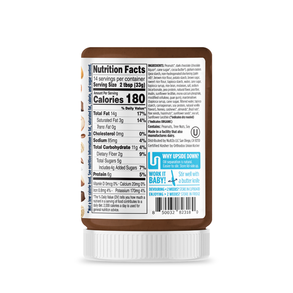 You’ll swear you just took a bite out of an ooey-gooey s’more. With just 5 grams of sugar per serving, you won’t feel guilty enjoying this all summer long! NuttZo S’mores six nut and seed butter contains the perfect balance of Peruvian dark chocolate, vegan marshmallows and gluten-free graham crackers.